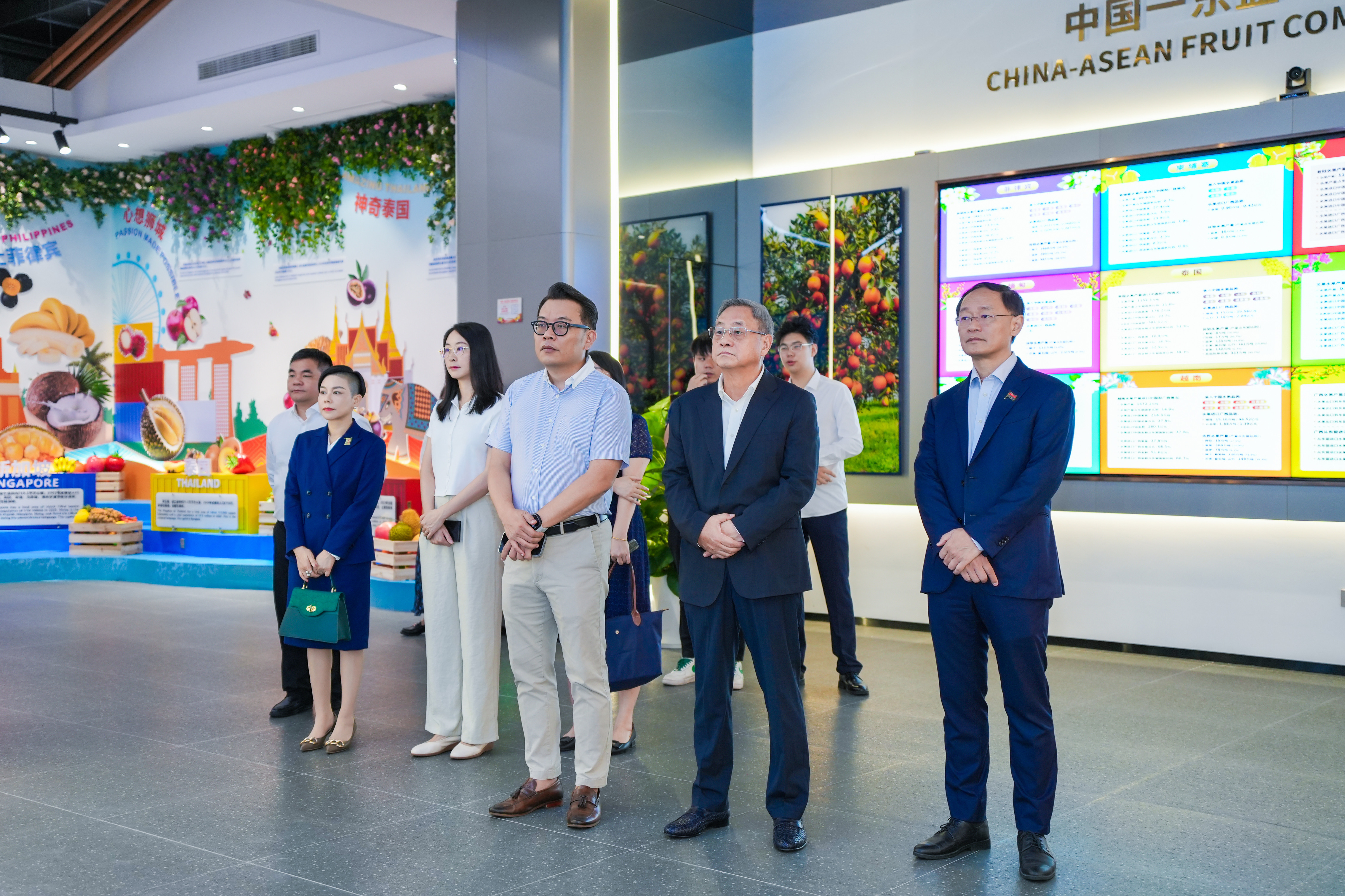 考察團(tuán)還參觀了水果交易中心展廳,就中國與東盟水果貿(mào)易情況及項(xiàng)目規(guī)劃進(jìn)行了溝通交流??疾靾F(tuán)表示,隨著廣西與東盟經(jīng)貿(mào)合作,特別是水果產(chǎn)業(yè)合作的持續(xù)深化,在廣西建設(shè)水果交易中心大有可為。柬埔寨也有很多特色水果,未來也希望能通過水果交易中心,高效銜接中國與東盟水果產(chǎn)業(yè)鏈資源,合作共贏。